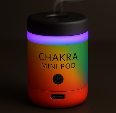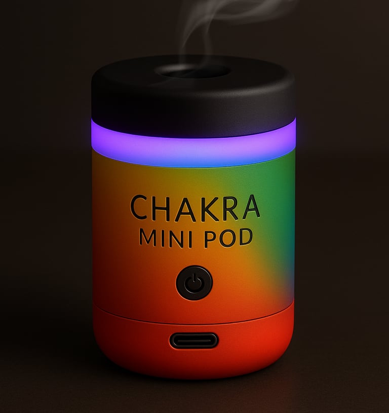 The 7-Chakra Edition Mini-Pods is designed for targeted chakra healing, with a unique crystal core, signature mist, guided breaths, and chakra-specific light to balance your energy centers.