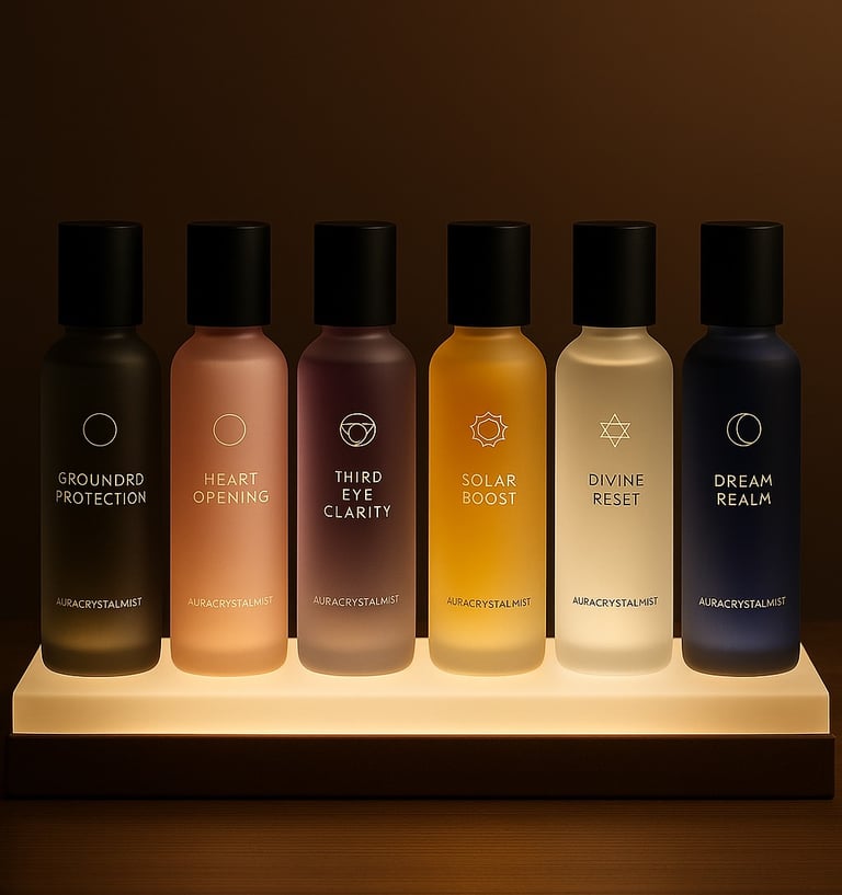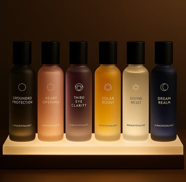 Crystal-infused mist blends designed specifically for AuraSense. Each blend supports different emotional frequencies and chakra alignments, enhancing your home’s energy naturally.